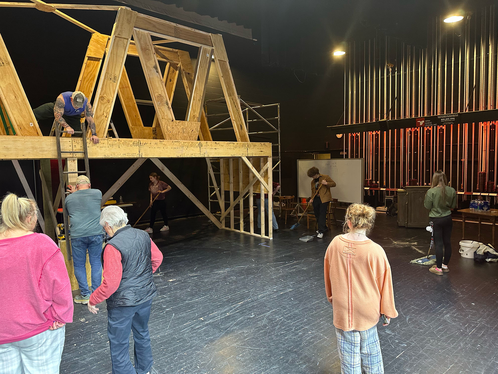 Our Saturdays are one of the most productive days! The entire cast gets together and completes a series of important tasks! This week our amazing set builders continued constructing the set, and our cast is super eager to get in there and start painting the set the next work day!