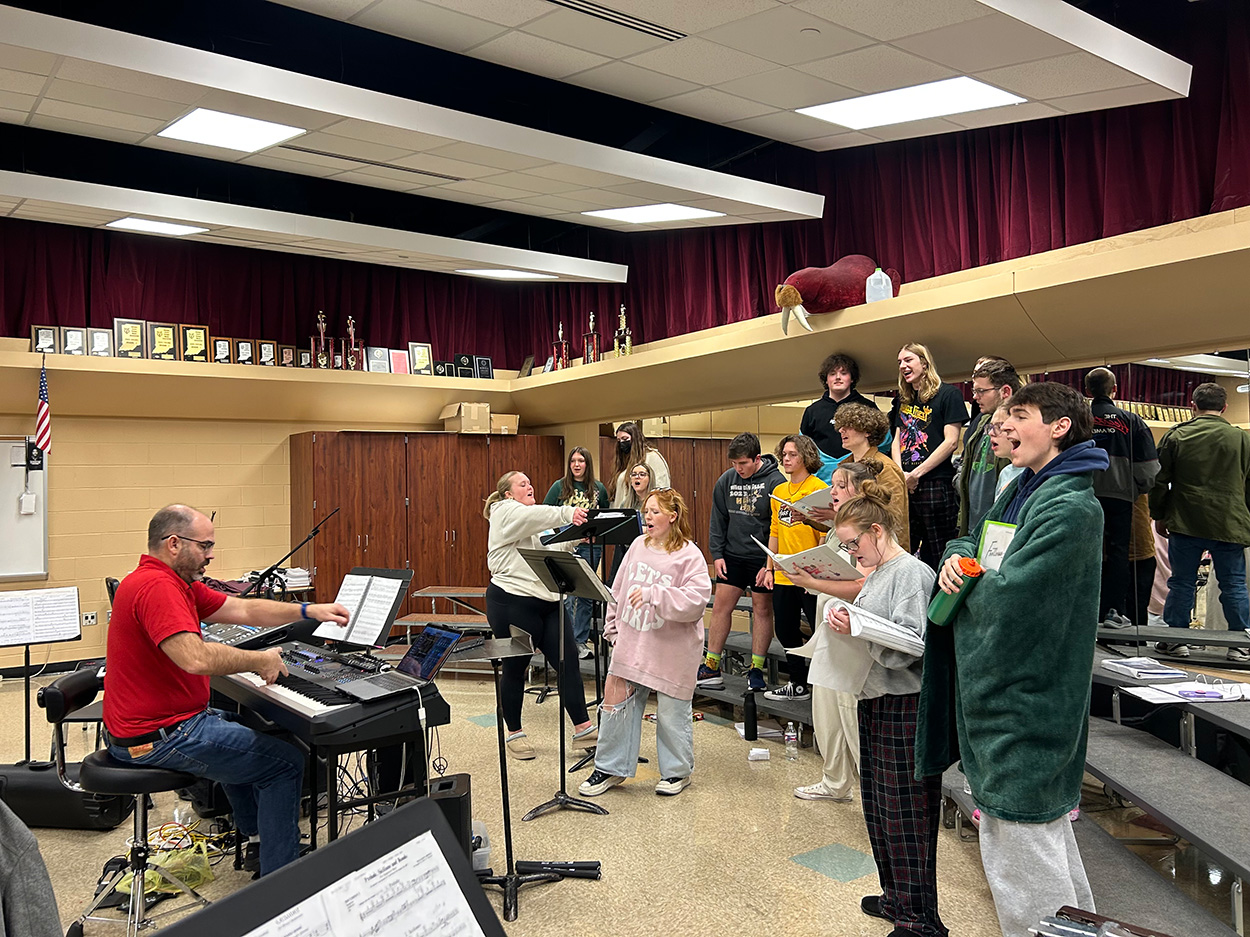 Monday was full of running through the songs and polishing the entire company’s vocals. Thanks to Mr. Rob Hutchinson, our Orchestra Conductor and Musical Theatre teacher, our cast is prepared to belt out these timeless songs.